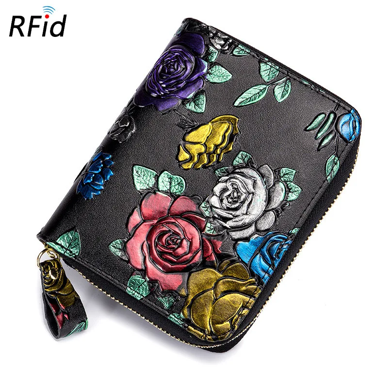 . [Скидка 35%] Купить Брендовый женский кожаный RFID кошелек на молнии, кредитный держатель для карт, органайзер с тиснением розы, чехол для паспорта, визиток, коше... Цена Дешево.