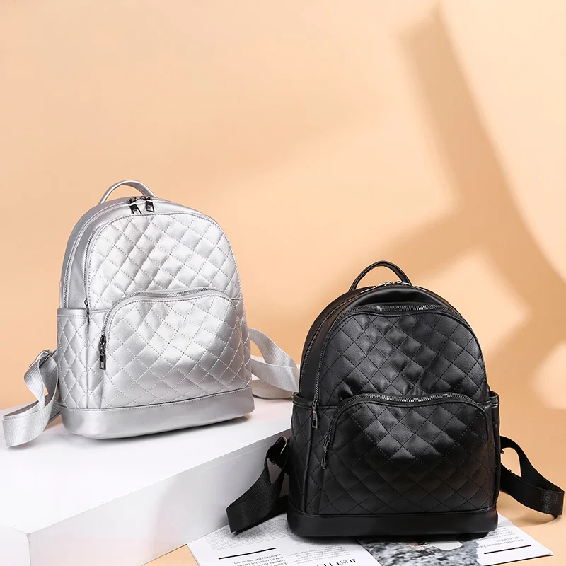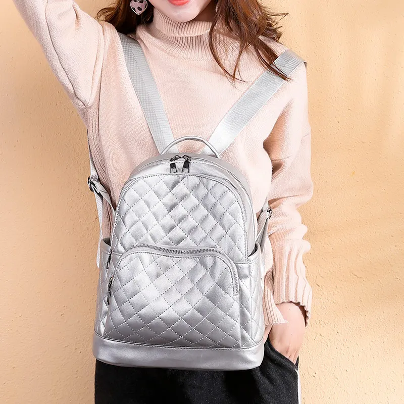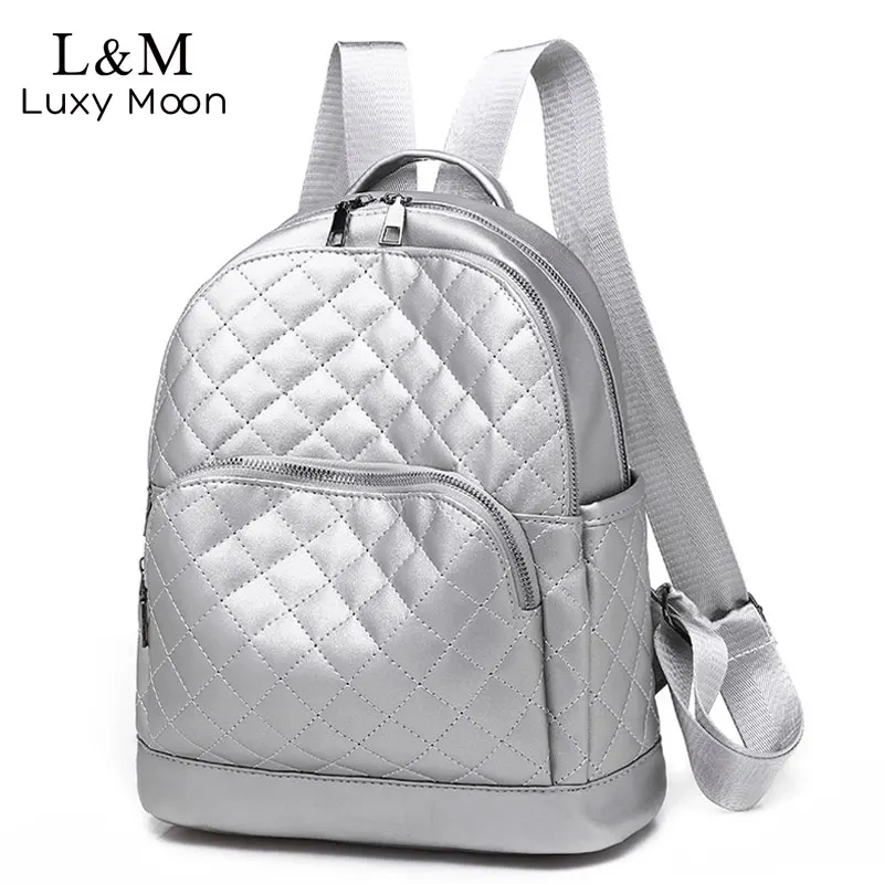 . [Скидка 40%] Купить Большой женский рюкзак из искусственной кожи с ромбовидной решеткой на молнии, школьные рюкзаки для девочек подростков, серебряная дорожна... Продажа Дешево.