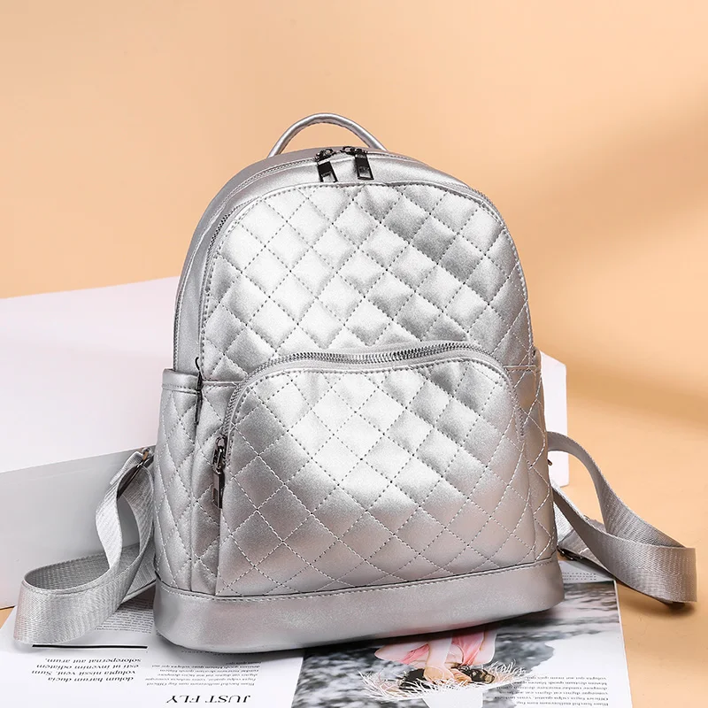 Special Offer Большой женский рюкзак из искусственной кожи с ромбовидной решеткой на молнии, школьные рюкзаки для девочек подростков, серебряная дорожна... Discount 40% Today!