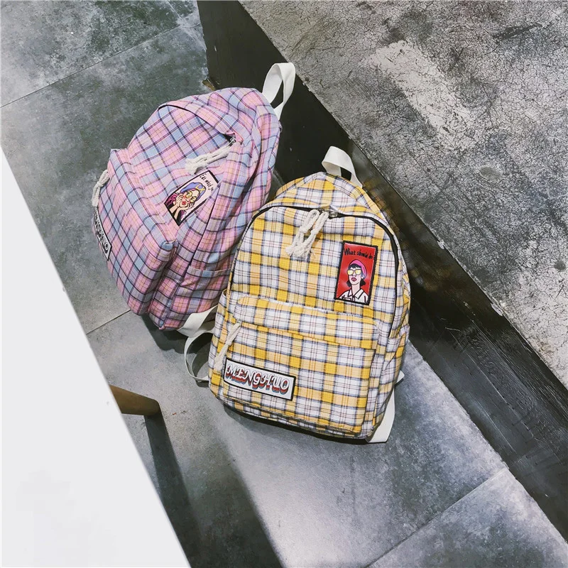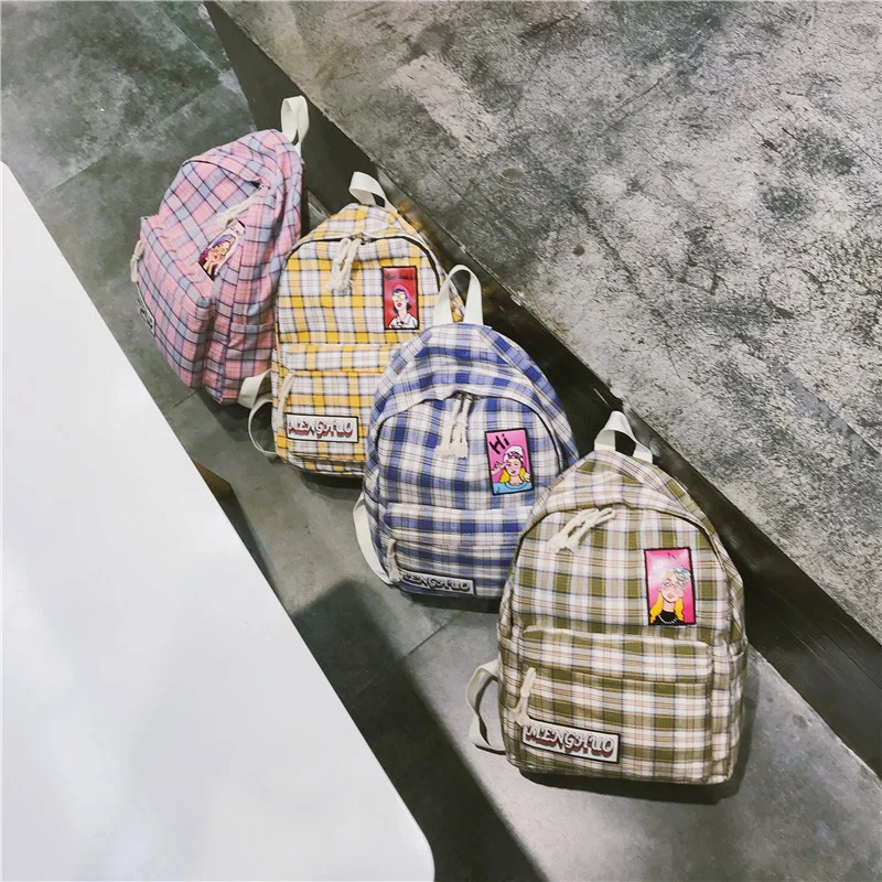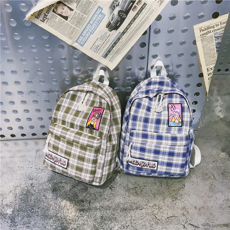 . [Скидка 49%] Купить Полиэфирный маленький свежий клетчатый женский рюкзак, Новый Модный высококачественный Большой Вместительный повседневный рюкзак для пут... Цена Дешево.